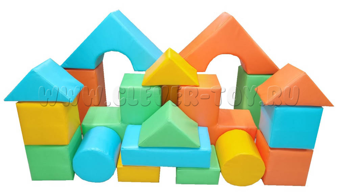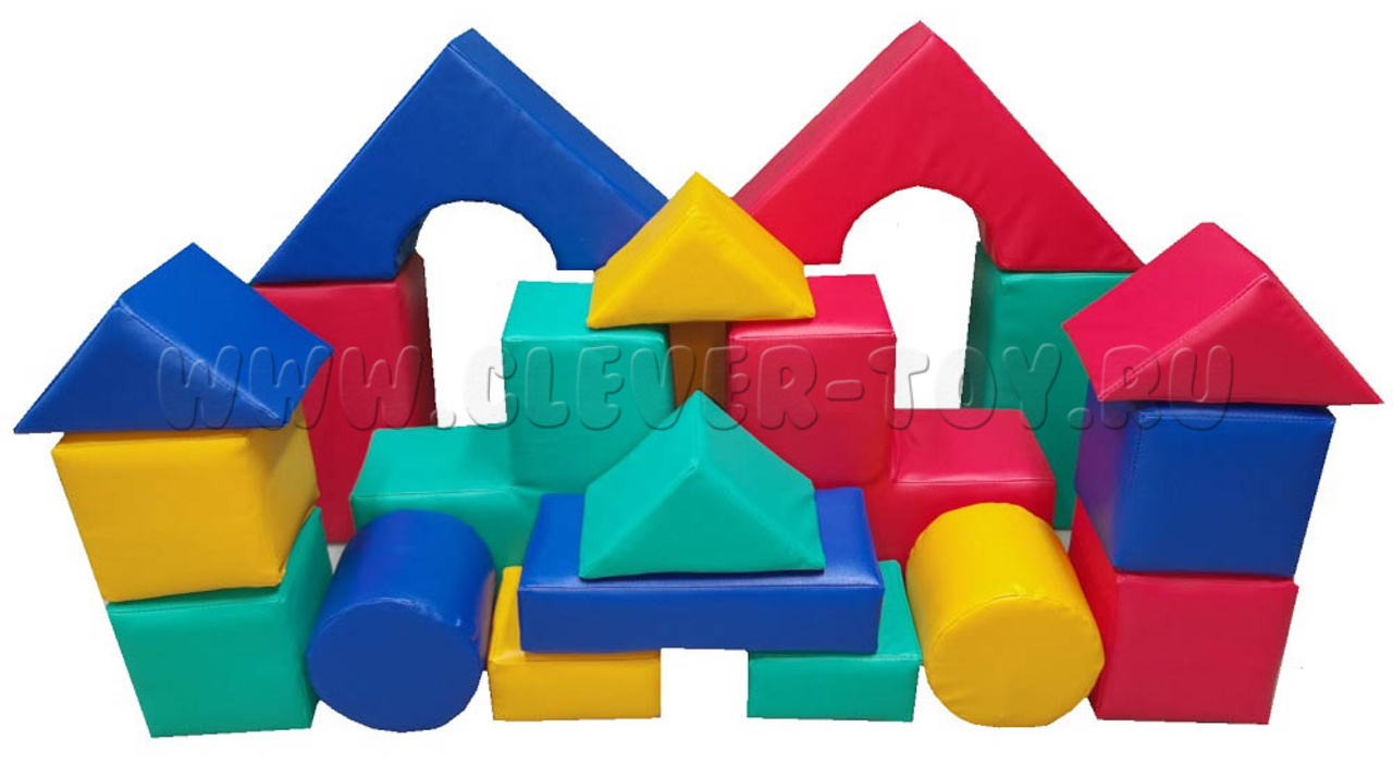 Комплектация: арка – 43х43х20 – 2 шт. брус – 40х20х20 – 3 шт. брус – 40х20х10 – 1 шт. папка – 20х20х10 – 2 шт. треугольник – 20х20 -4шт. круг – 20х20 – 2 шт. ступень – 40х20х20 – 2шт. куб – 20х20х20 – 4 шт.