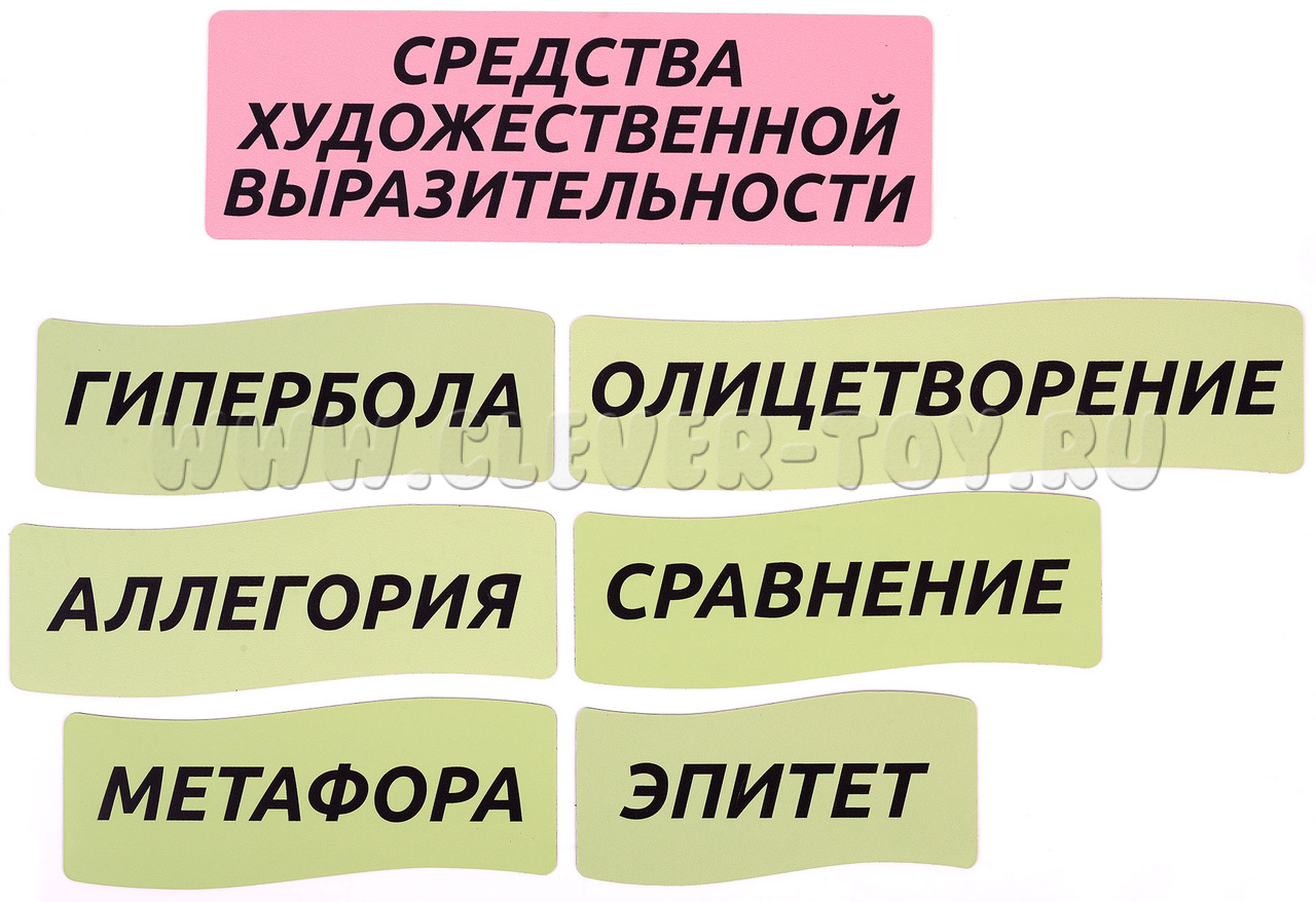 Учебное пособие, включающее в себя карточки с названиями наиболее распространенных выразительных средств, используемых при написании произведений.
