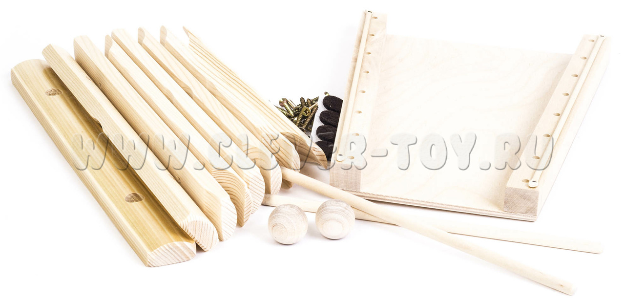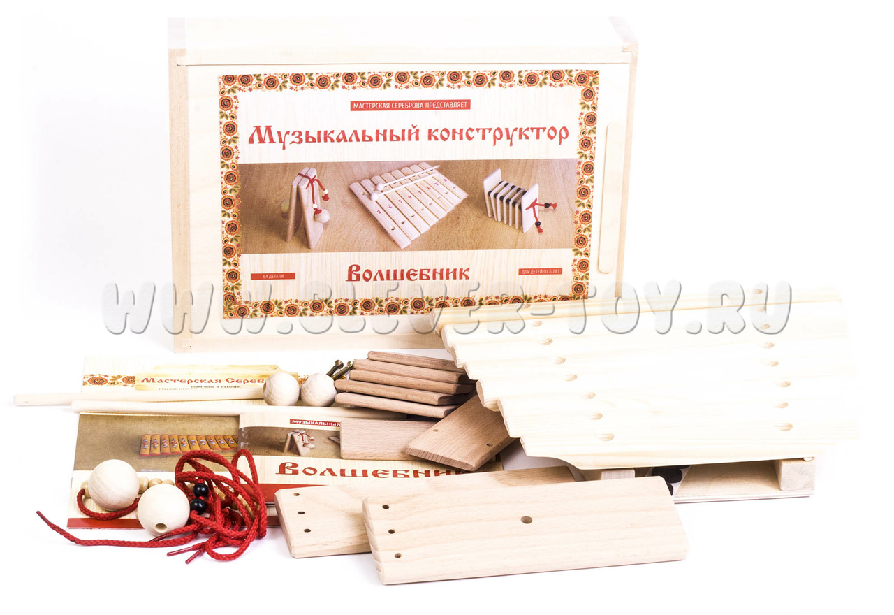 Русский народ с древности был очень музыкальным. Любой праздник не обходился без музыки, песен и плясок. Все создавалось самостоятельно, и любой уважающий себя мужчина умел не только играть на музыкальных инструментах, но и мастерить их. А ведь и правда, многие русские народные инструменты созданы из подручных средств: глины, дощечек, дров и т.п. В нашем веке многим проще купить готовые вещи, чем затратить свое время на их создание. Мы предлагаем вам музыкальный конструктор, который сплотит вашу семью. Вы не просто будете играть на инструментах, они послужат вам приятным воспоминанием о времени, проведенном вместе за их созданием. Конструктор состоит из восьми пластинного ксилофона, хлопушки и пластинчатой трещотки. Детали музыкальных инструментов выполнены из березы, а в комплекте идут крепежи и инструкция по сборке. Музыкальный набор инструментов послужит не только музыкальной игрушкой для вашего ребенка, но и развивающим элементом.