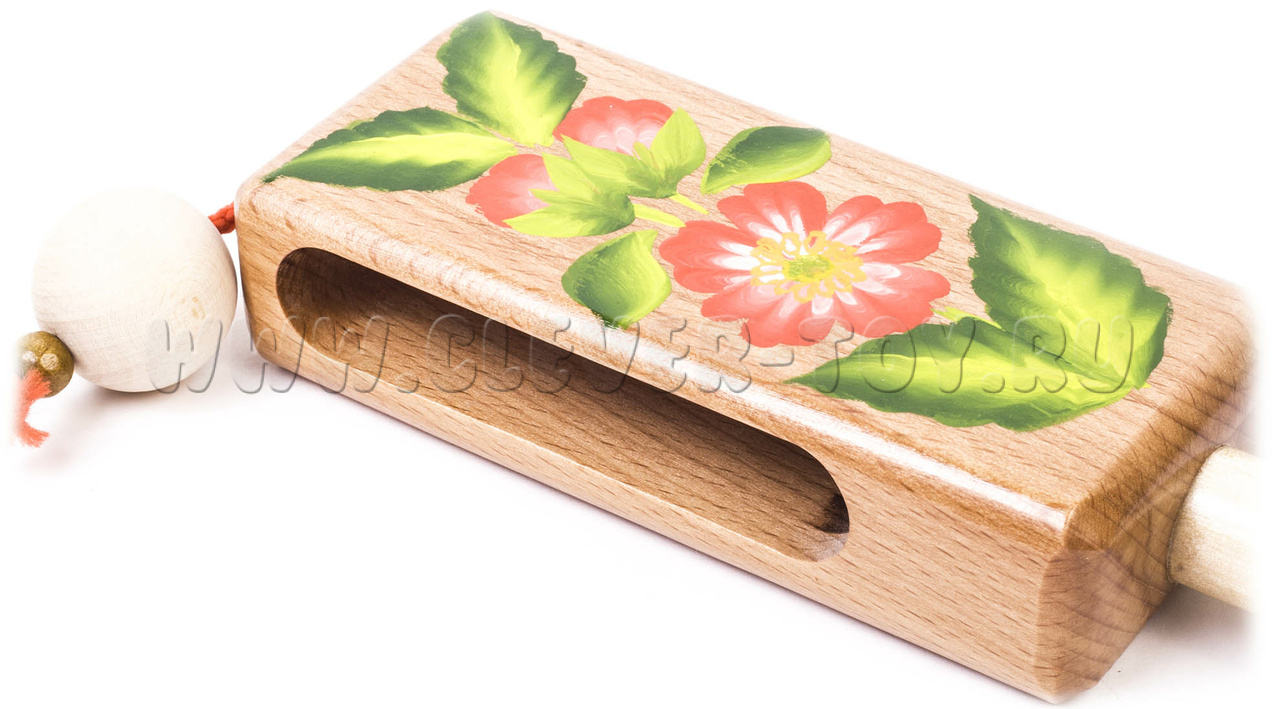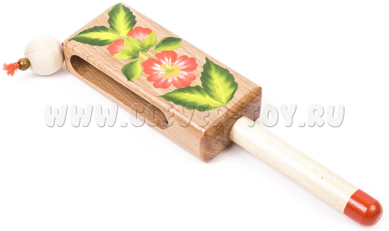 В нижней торцевой части бруса монтируется фигурная ручка, изготовленная на токарном станке. На стороне бруса размером 115 мм нанесена роспись.