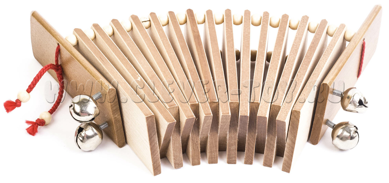 Трещотка пластинчатая "малютка" с бубенцами (дерево тонированное, 2 категория)