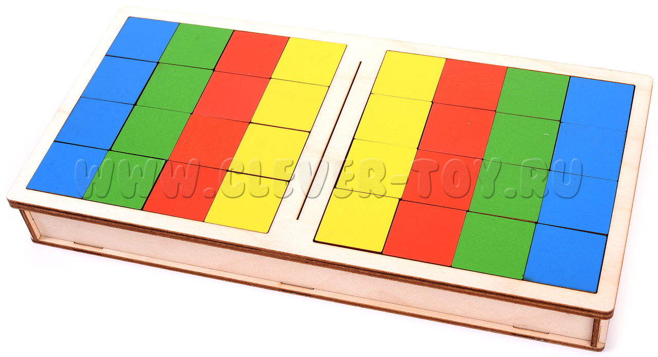 3. Игра "Повтори узор". Возьмите 16 фишек (по 4 каждого цвета) и разместите их на одной половине игрового поля. Предложите ребенку разместить оставшиеся фишки на второй половине поля по предложенному вами образцу.
