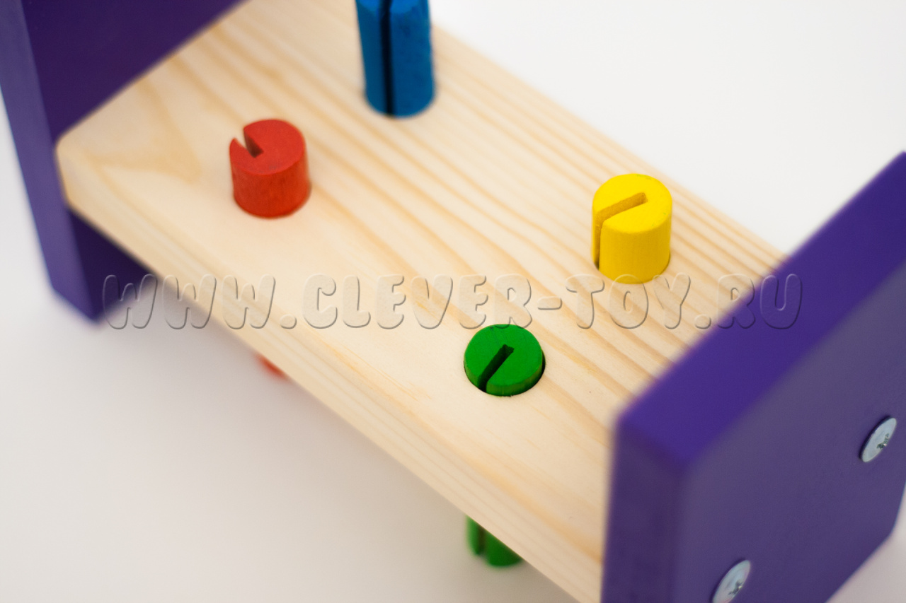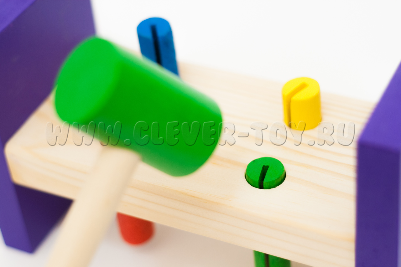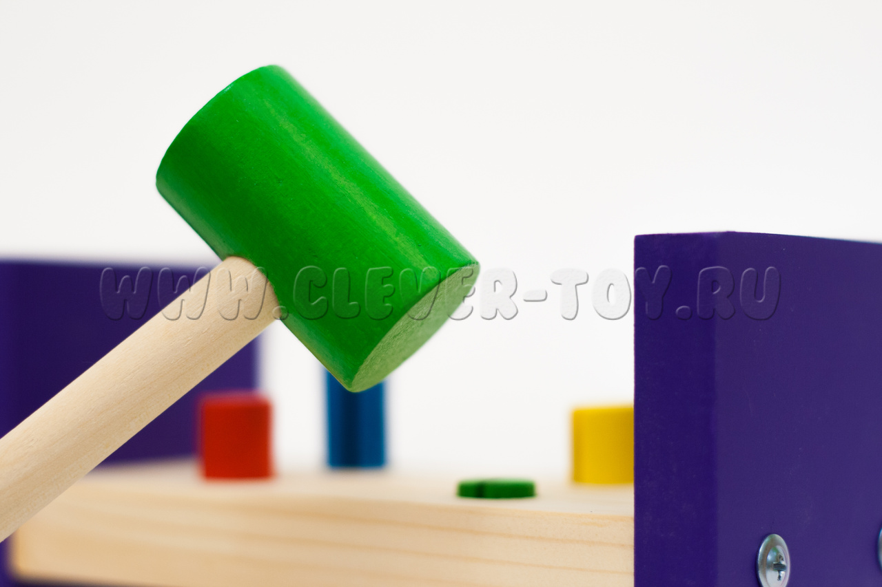 Играя "Стучалкой" малыш снимает напряжение и излишнюю длигательную активность, получая при этом массу удовольствия. С помощью этой игрушки ребенок научится считать до 4, различать цвета.
