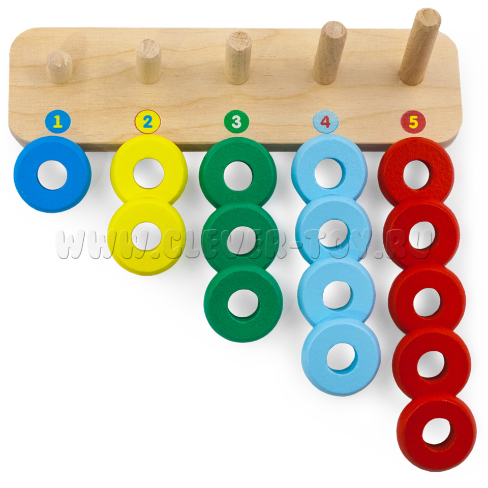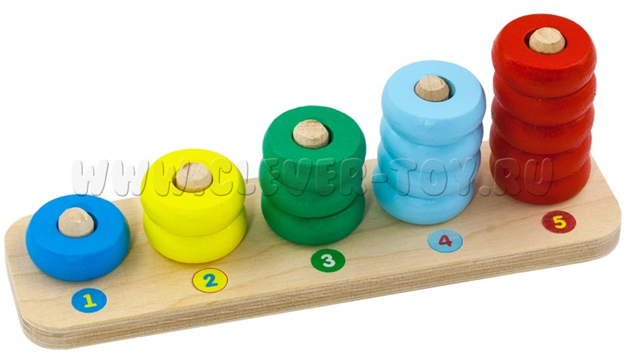 Пирамидка деревянная "Счеты" (15 колец, основание)