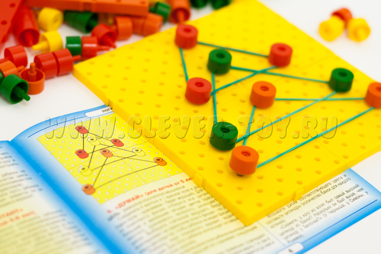 • легко скрепляющиеся между собой диски указанных 4-х цветов – всего 72 штуки.При присоединении одного диска к другому образуются цилиндры, которые сравниваются по высоте;