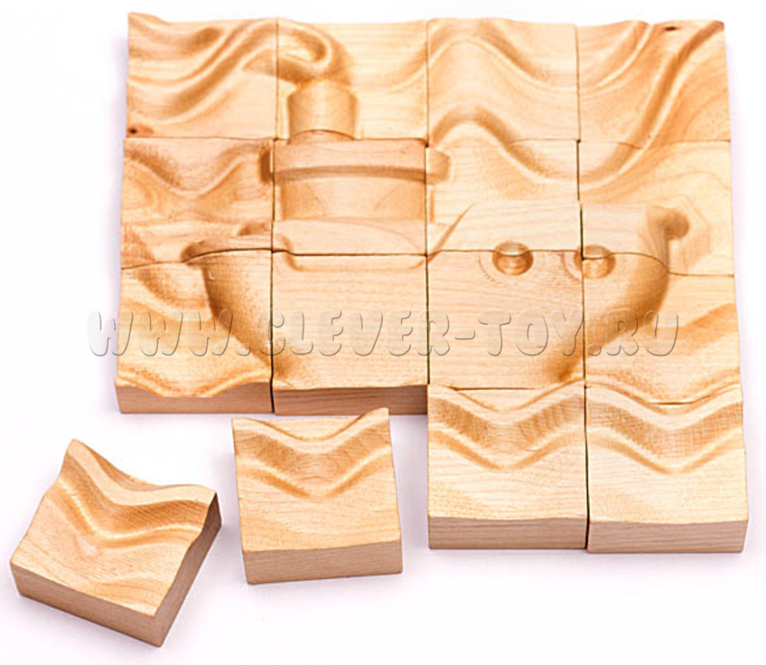 Пазл состоит из 16 деревянных элементов.