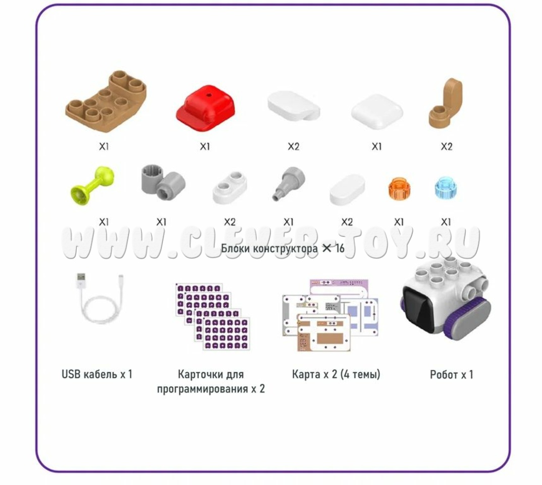 Ребенок программирует движение робота, размещая командные карточки на линии карты, входящих в комплект, либо на нарисованных линиях от руки. Командные карточки, размещенные на траектории робота, программируют движение, звук, а также эмоции на лицевой панели. Эти функции могут быть использованы для обучения малышей основам программирования: причинно-следственным связям, логике "если/то", последовательности, устранению ошибок и многому другому! Компьютеры и мобильные устройства при программировании робота не используются!