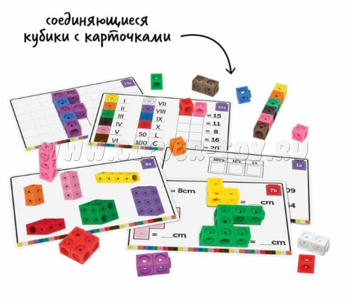 • Кубики «Академия математики» (2 в 1) - многофункциональный набор для изучения арифметики, геометрии и логики. Позволяет моделировать математические примеры, осваивать дроби, симметрию и измерения. Включает 15 обучающих карточек.
