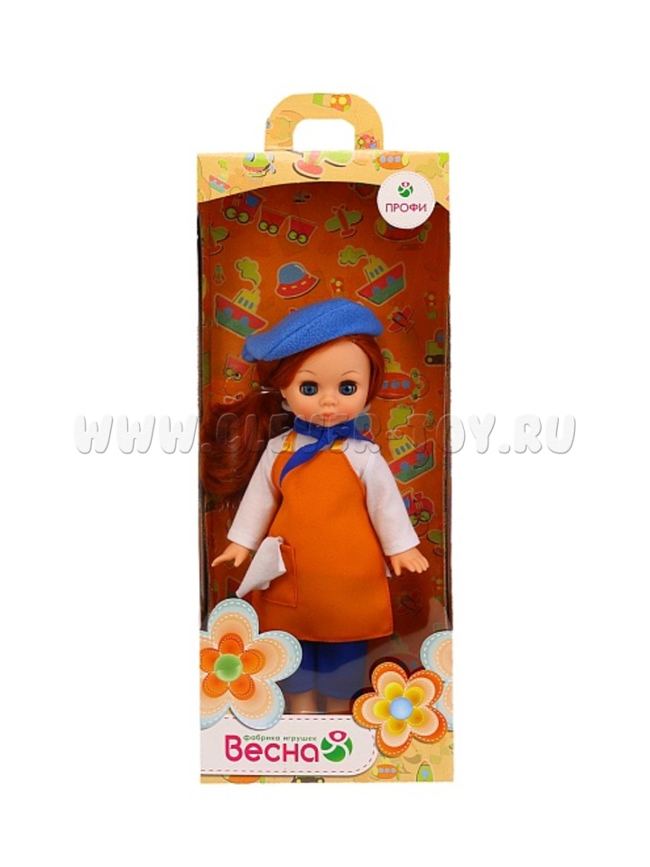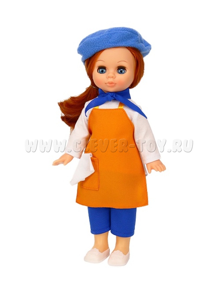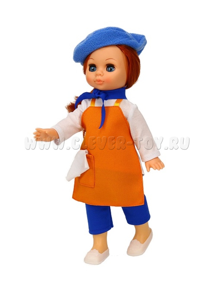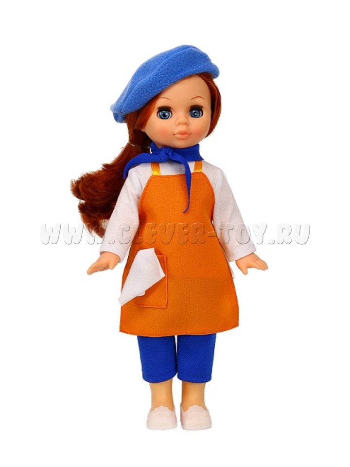 В комплект одежды девочки-художницы входят: беретик, кофта, фартук с платком, брюки, туфли, трусики. Кукла выглядит как настоящая модница - стильный образ вдохновляет на творчество.