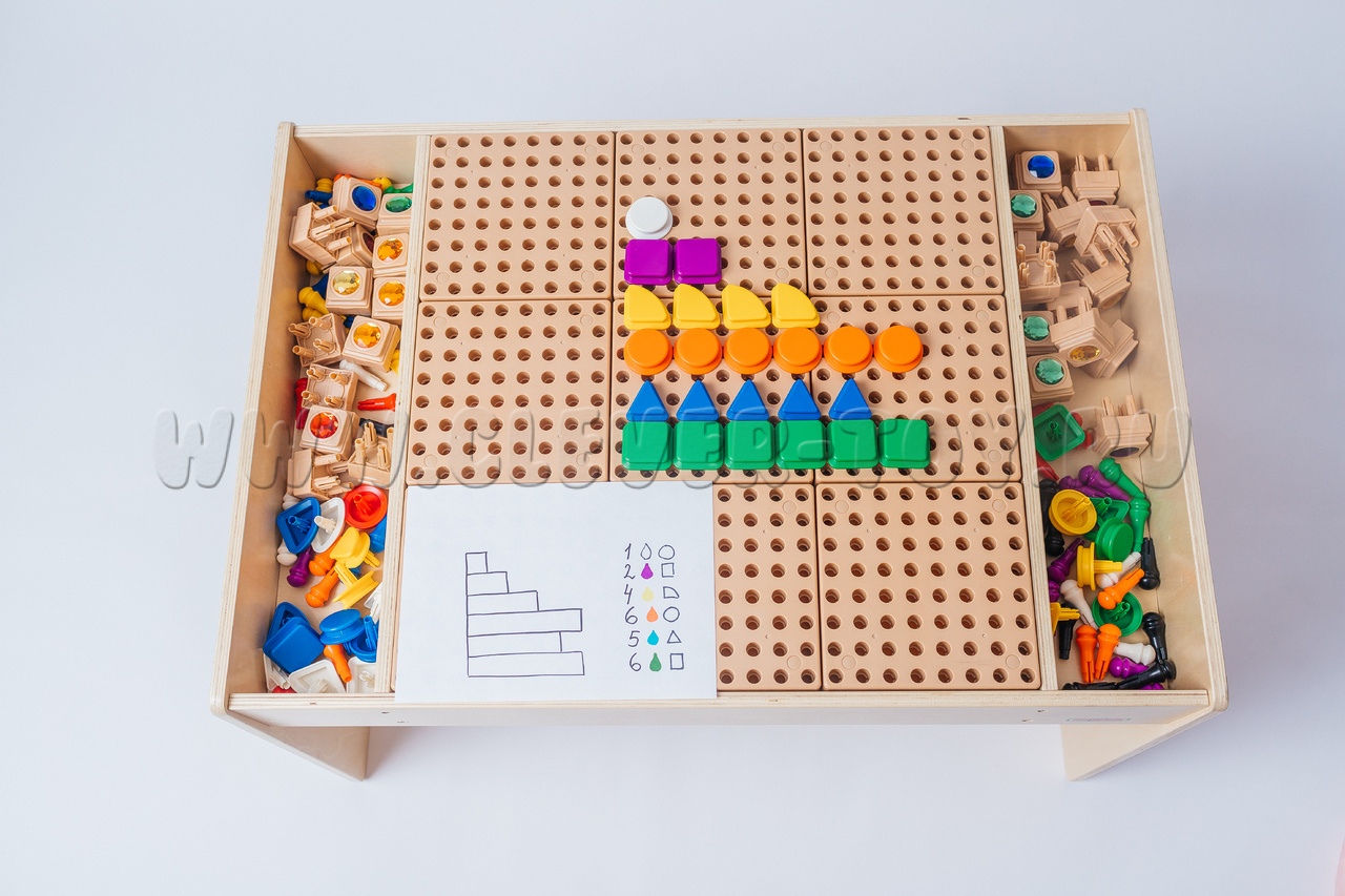 Конструкция стола - удобный формат работ для детей, можно комфортно сидеть и спокойно выполнять задания или просто играть.