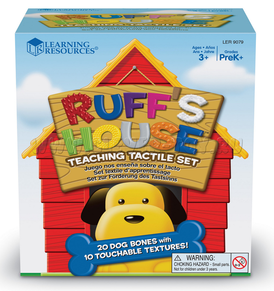 Игра помогает развивать тактильные навыки с помощью собачки "Руффа" и его текстурированных косточек.