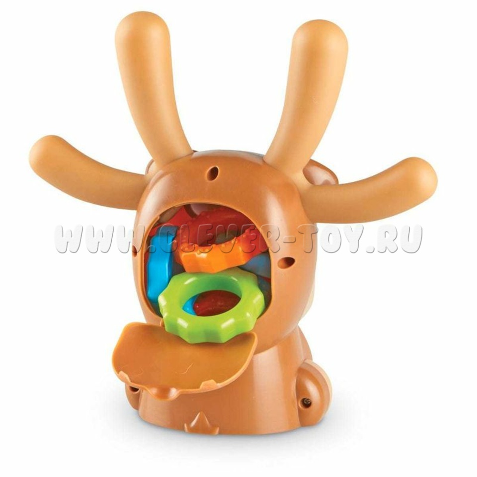 Лосенок Макс будет очень рад, если его новый друг поможет ему рассортировать по цвету все колечки-шайбы на рожках. В ответ Макс поможет другу усовершенствовать мелкую моторику, развить координацию движений, научит рассчитывать силу рук.